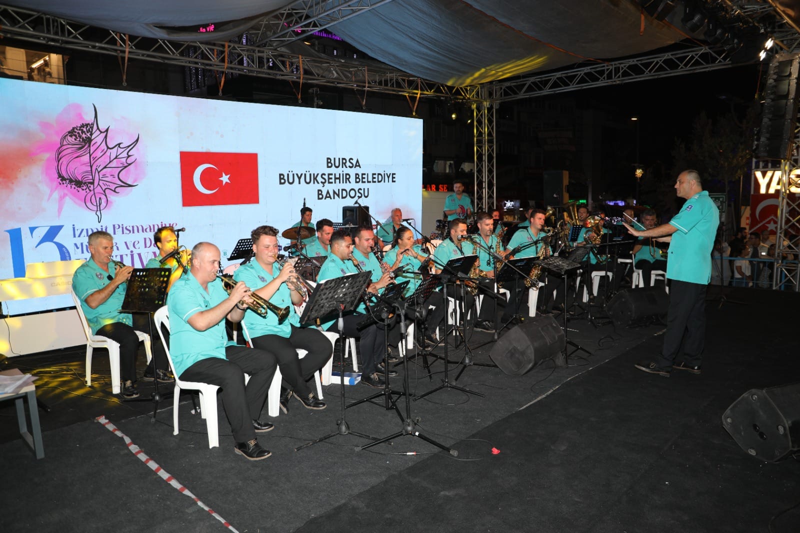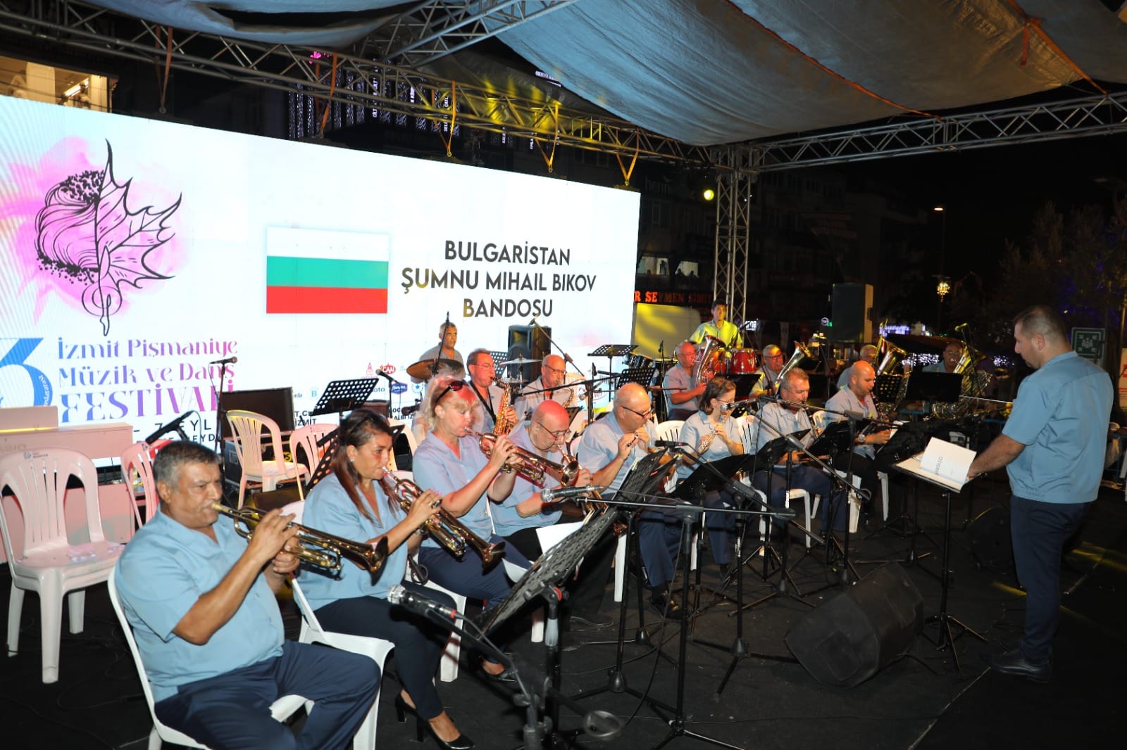 Yurt içinden ve yurt dışından gelen bando ekipleri 13. Uluslararası İzmit Pişmaniye Müzik ve Dans Festivalinin ilk gününde İzmit Belediye Meydanında birbirinden güzel performanslara imza attılar