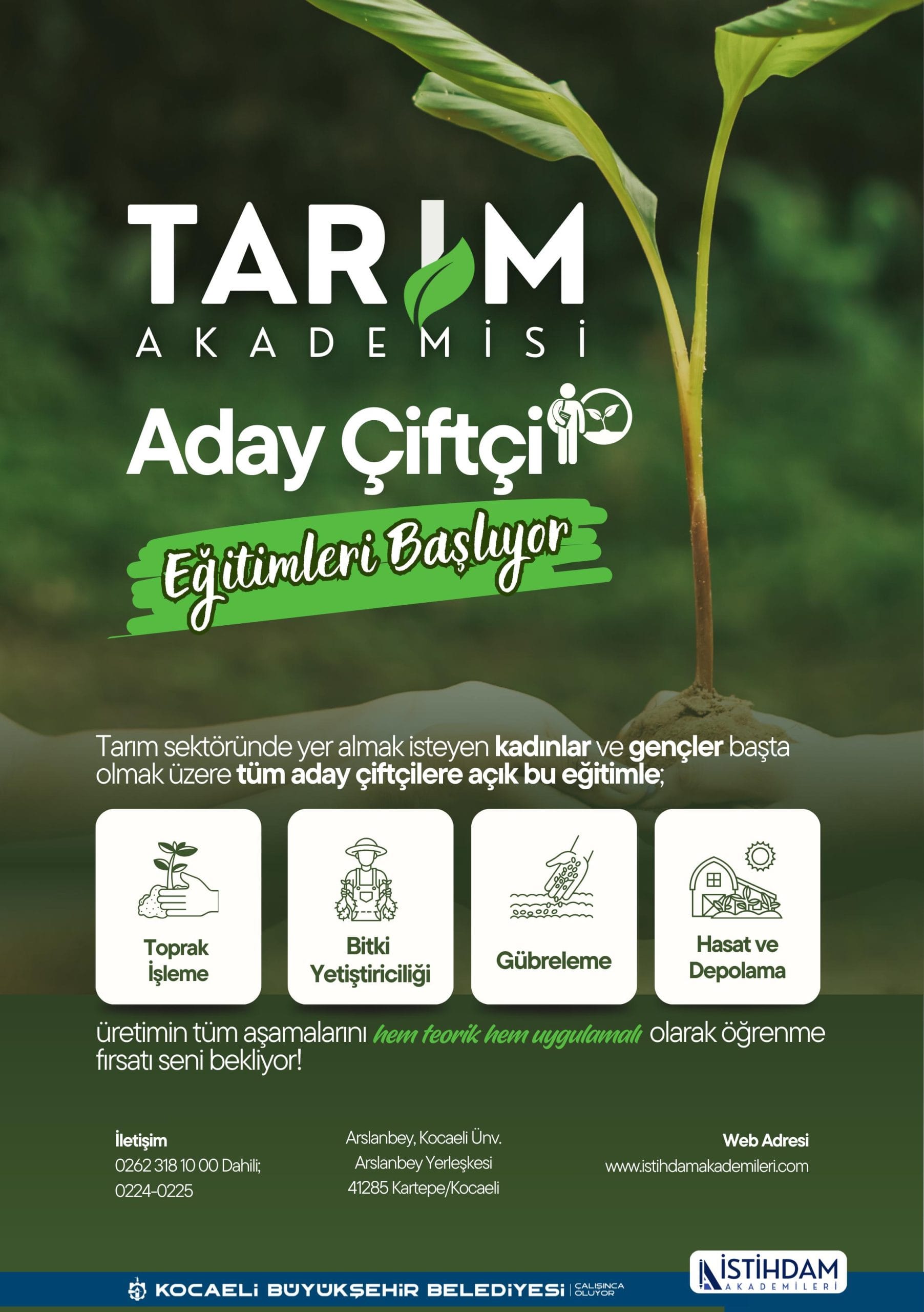 Kocaeli Büyükşehir Belediyesi Kadın ve Aile Hizmetleri Dairesi Başkanlığı ile Muhtarlık İşleri Dairesi Başkanlığı tarafından İstihdam Akademileri bünyesinde başlatılan “Tarım Akademisi Projesi”, tarım sektöründe gençlere hem teorik hem de uygulamalı eğitim sunarak nitelikli iş gücü yetiştirmeyi amaçlıyor.