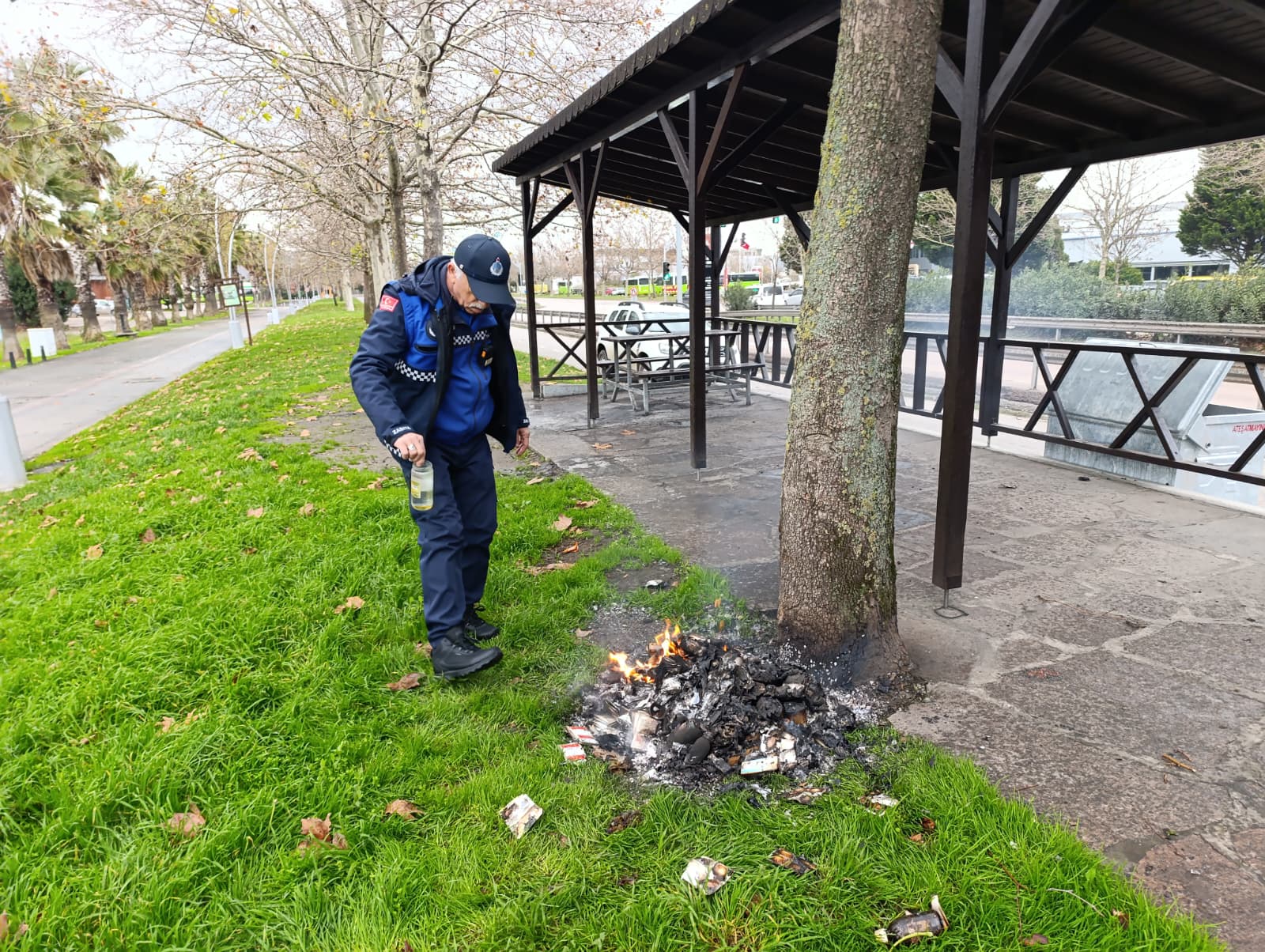 Kocaeli Büyükşehir Belediyesi Zabıta Dairesi Başkanlığı ekipleri, kent genelinde yürüttükleri asayiş ve güvenlik çalışmalarının yanı sıra risk oluşturan durumlara da anında müdahale ediyor. Zabıta ekipleri, devriye görevi sırasında İzmit Kuş Cenneti 1. etap bölgesinde ağaç kenarında yakılmış bir ateş tespit etti.