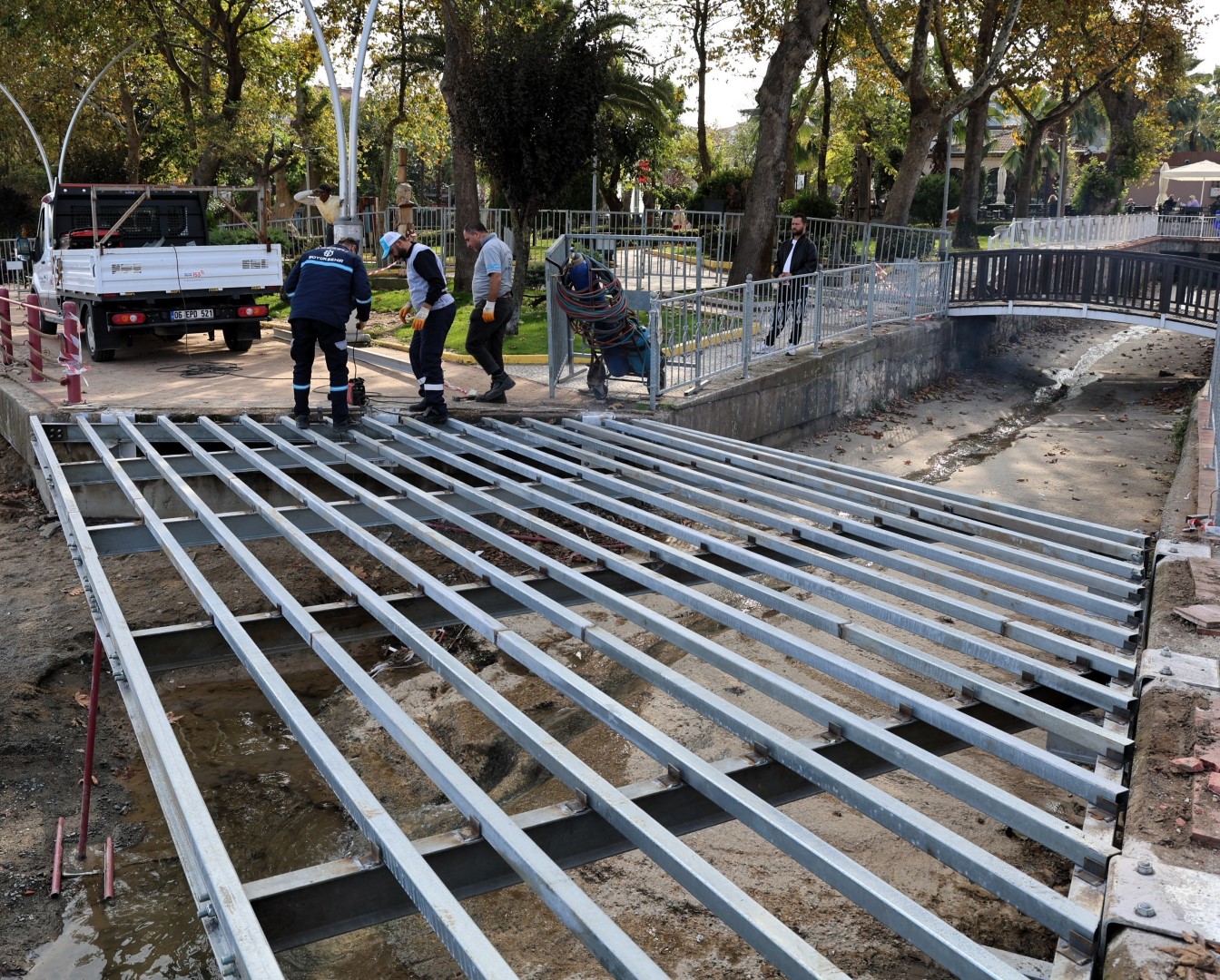 Büyükşehir Belediyesi Park ve Bahçeler Dairesi Başkanlığı tarafından yürütülen proje kapsamında, köprünün çelik konstrüksiyon imalatı Metal İşlem Atölyesi’nde tamamlandı. Daldırma galvanizli NPI ve kutu profiller kullanılarak imal edilen çelik yapı, alana sevk edilerek montajı gerçekleştirildi.