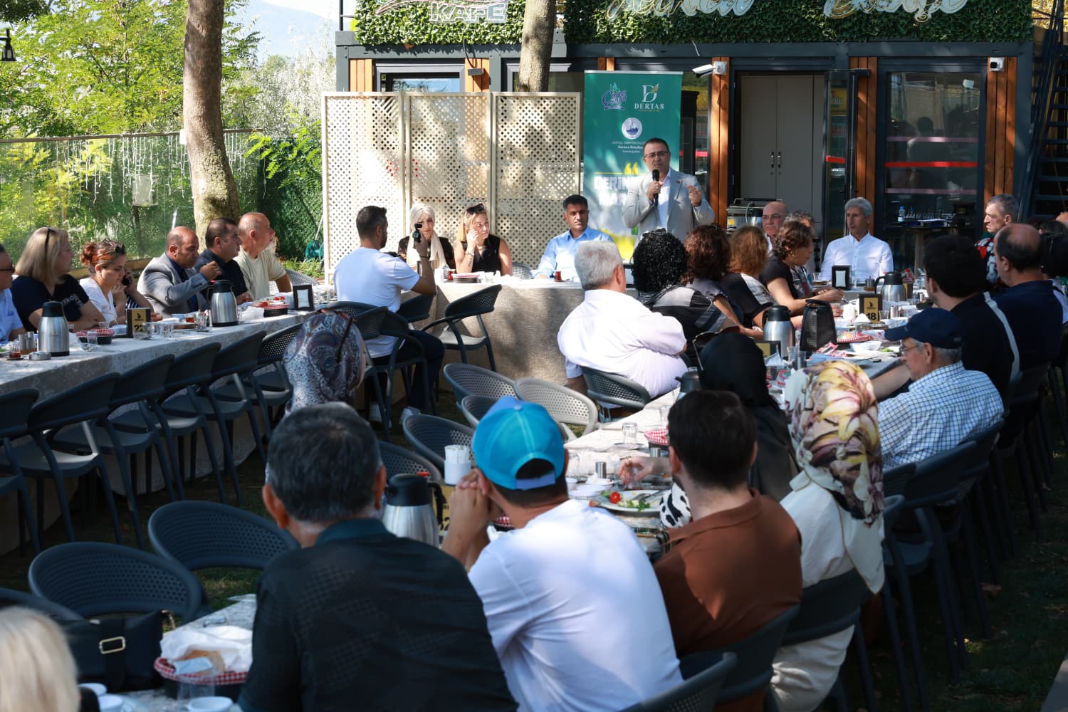 Derince Belediye Başkanı Av. Sertif Gökçe Yelken Kafe’de düzenlenen toplantıda Kocaeli Esnaf ve Sanatkarlar Odaları Birliği Başkanı Kadir Durmuş, Kocaeli Kantin İşletmecileri Derneği Kurucu Başkanı Alican Kazgan ve ilçe genelinde faaliyetlerini sürdüren kantinciler ile bir araya geldi. Samimi bir atmosferde gerçekleşen programda Başkan Gökçe kantincilerin talep ve önerilerini dinlerken öte yandan da belediyenin üretim ve istihdama yönelik çalışmaları ile ilgili bilgilendirmede bulundu.