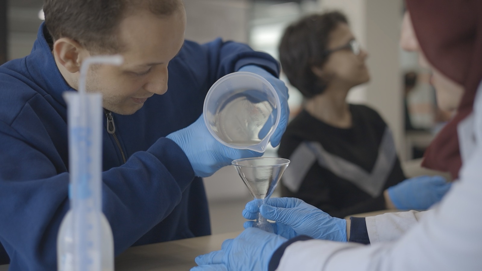 Etkinliğin konukları Dilovası GEBKİM Mesleki ve Teknik Anadolu Lisesi Kimya Bölümü’nden gelen 25 öğrenci oldu. Geleceğin kimyagerleri, teorik bilgilerini bu kez gönüllülükle birleştirdi. Merkezde eğitim alan özel bireylerle yan yana gelen öğrenciler, birlikte sakız kokulu kolonya üretti. Formüllerin içine sevginin de eklendiği üretim sürecinde hem teknik beceriler paylaşıldı hem de kuşaklar arası sıcak bir bağ kuruldu.