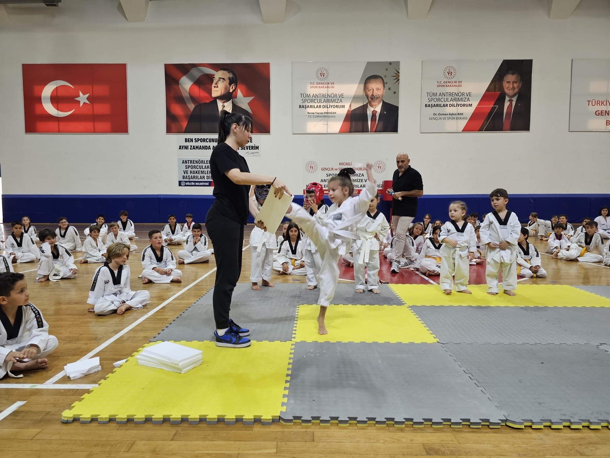 Gölcük Belediyesi, geleceğin yıldız sporcu adaylarını bünyesinde yetiştirmeye devam ediyor. Bu kapsamda Gölcük Belediyespor bünyesinde bulunan 253 taekwondo sporcusu, kuşak sınavını başarı ile tamamlayarak bir üst kemere geçiş yaptılar. 17 Ağustos Spor Salonu’nda düzenlenen Taekwondo Kuşak törende sporcular tarafından yapılan gösteriler, salonu dolduran ailelerinden alkış aldı. Törene katılan Gölcük Belediye Başkanı Ali Yıldırım Sezer, gösterilerin ardından kuşak atlayan sporculara yeni kemerlerini takdim etti. Tören ile sporcular; yeni kuşaklarını alarak bir üst kemere geçiş yaptılar.