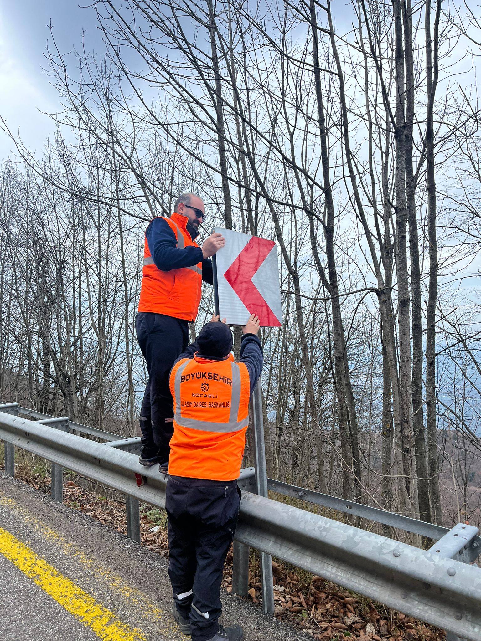 Kocaeli Büyükşehir Belediyesi, Kartepe zirve yolunda kış aylarında güvenli ve kesintisiz ulaşımı sağlamak için levha ve kar direği yenileme çalışmalarını gerçekleştirdi.