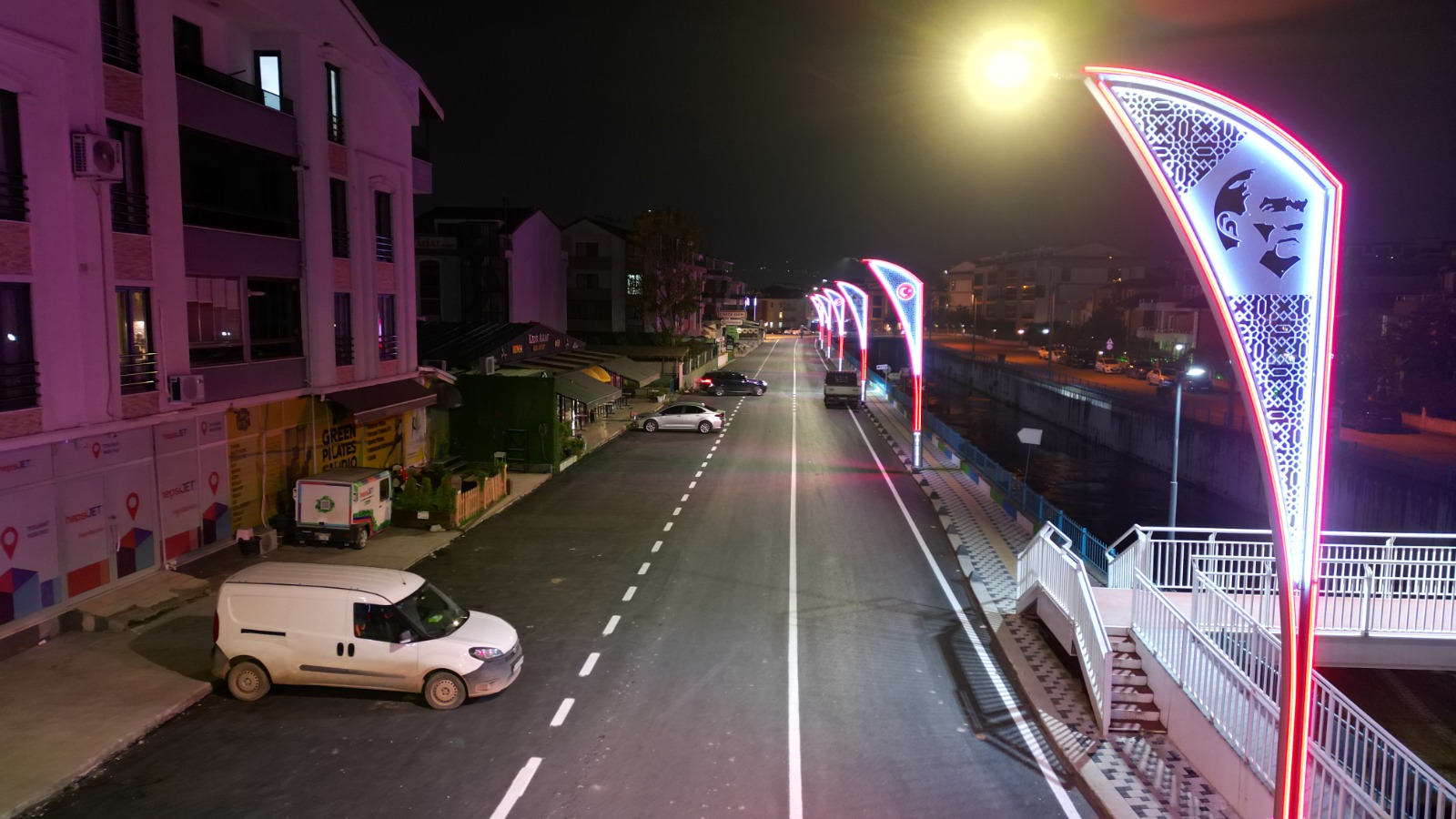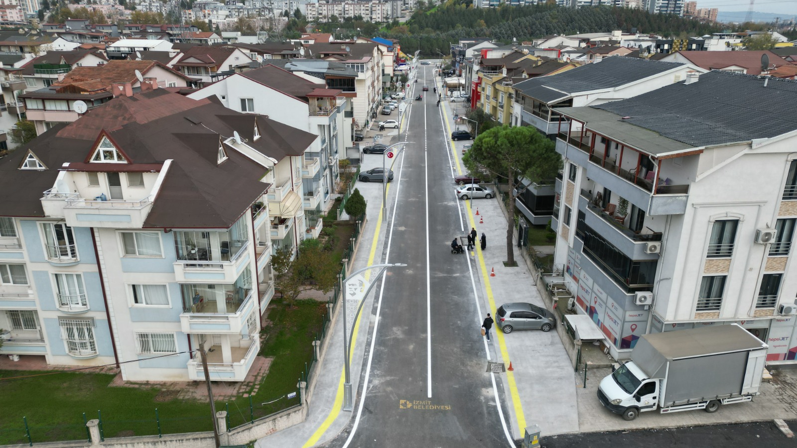İzmit Belediyesi Fen İşleri Müdürlüğü, yılların yükünü taşıyan ve yoğun altyapı çalışmaları sonrasında bozulan yolları, yeni asfaltlama çalışmalarıyla hem güvenli hem de konforlu bir görünüme kavuşturdu. İzmit Belediyesi, Kadıköy Mahallesi Zümrüt Sokak’taki 550 metrelik yolda 660 ton asfalt serimi 2 bin 300 metrekare parke ve 3 bin 800 metrekare beton kaldırım çalışması gerçekleştirildi. Zümrüt Sokak, Atatürk motifli aydınlatma direkleriyle ışıklandırıldı.