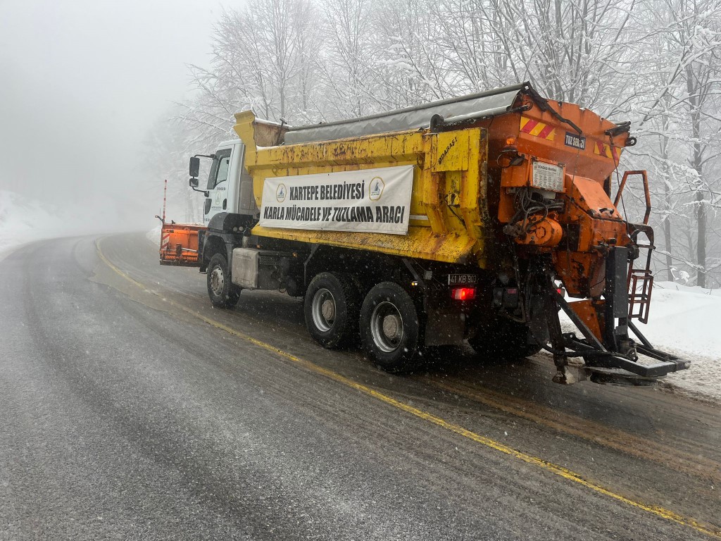 Yüksek kesimlerde kar yağışının başlamasıyla birlikte Kartepe Belediyesi Fen İşleri Müdürlüğü’ne bağlı ekipler kar küreme ve tuzlama çalışmalarına aralıksız devam ediyor.  Biriken karları temizlemek için özel donanımlı araçlarla çalışan ekipler, tipi ve yoğun yağışa rağmen yolların açık kalmasını sağlıyor.