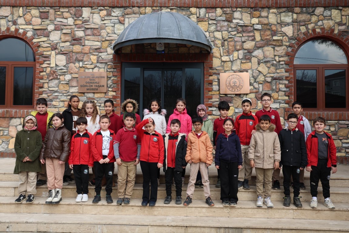 Osmanlı’nın günlük hayatına ışık tutan eserlerin sergilendiği müzede öğrenciler, o dönemin sosyal yaşamını yansıtan objeleri büyük bir merakla inceledi.