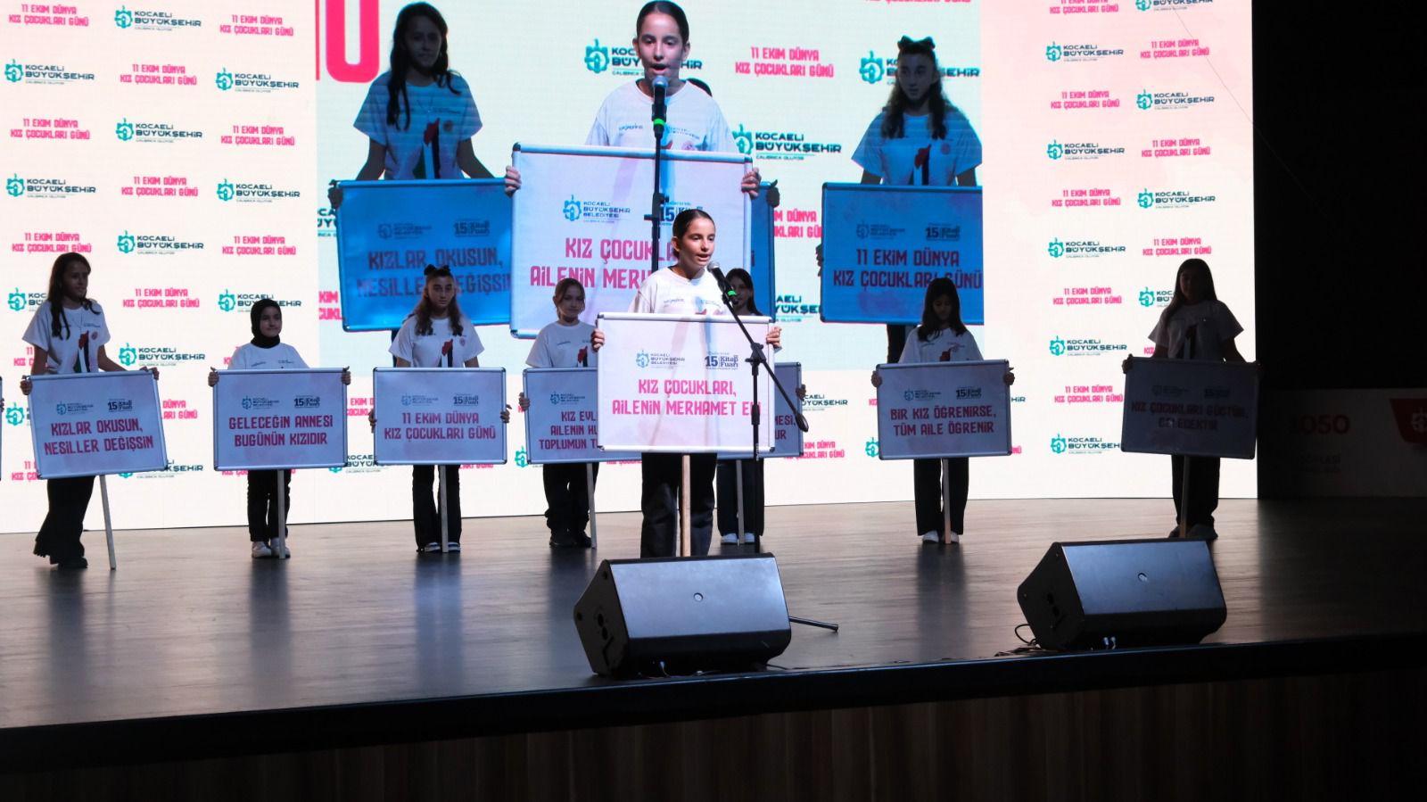 Kocaeli Kongre Merkezi Akçakoca Salonu’nda gerçekleşen etkinliğe, Kocaeli Büyükşehir Belediyesi Başkan Vekili Berna Abiş, “Akademisyen Anne” ismi ile sosyal medyada tanınan yazar Doç. Dr. Saniye Bencik Kangal, çocuklar ve aileleri katıldı. Programda kız çocukları, ellerinde taşıdıkları anlamlı dövizlerle sahneye çıkarak, hazırladıkları şiirleri büyük coşkuyla seslendirdi. Sahnede yer alan dövizlerde “Kızlar Okusun Nesiller Değişsin”, “Bir Kız Öğrenirse Tüm Aile Öğrenir”, “Savaş Değil Sevgi Büyütsün”, “Kız Çocukları Güçtür, Gelecektir” gibi ifadeler yer aldı. Kız çocuklarının sesinden yankılanan bu mesajlar, salonda duygusal anlar yaşattı.