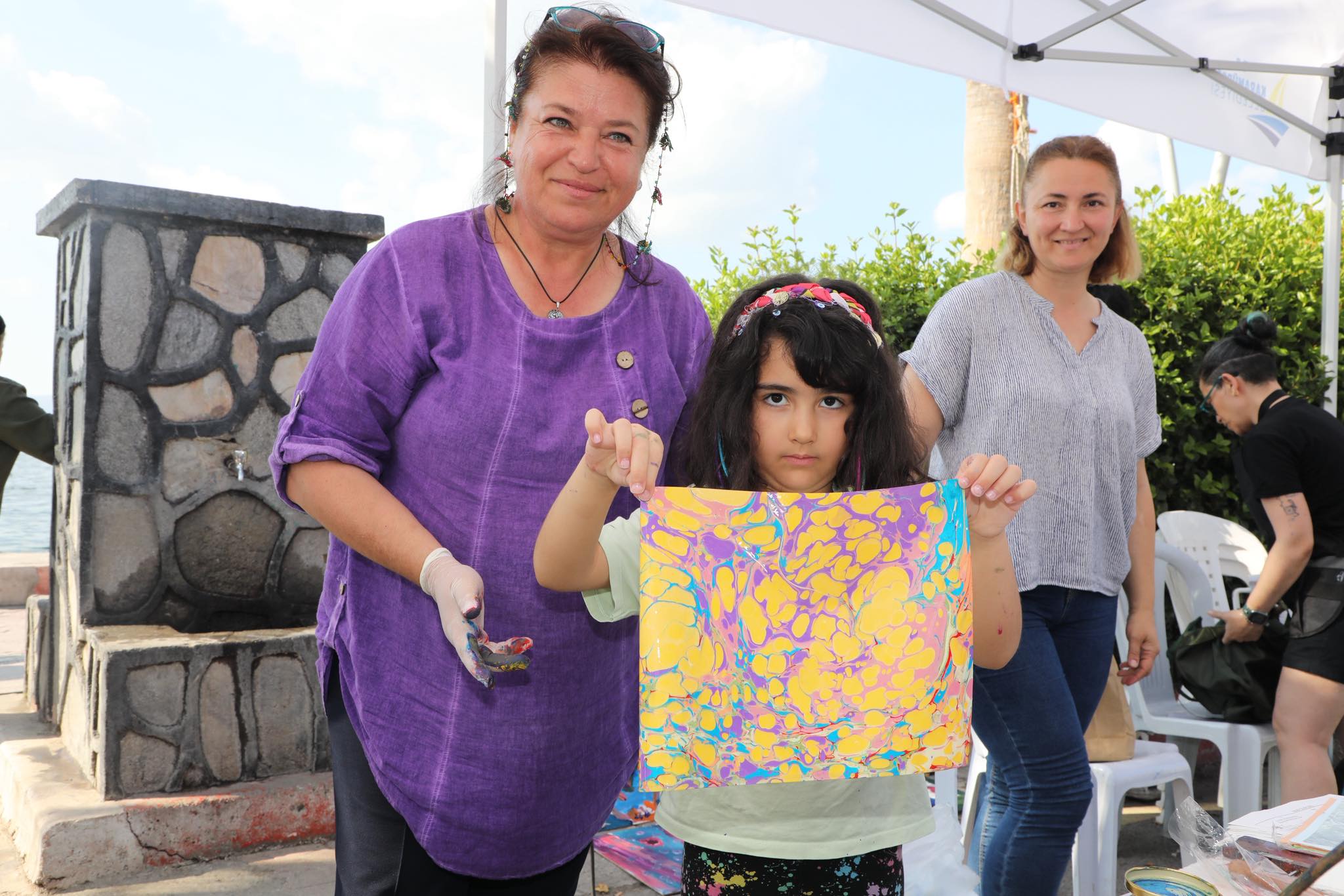 Atık ürünleri renklendirerek geri dönüşümün önemini kavrayan minikler, geleneksel Türk sanatı ebru ile de tanıştı. Çocuklar, bu anlamlı etkinlikler için Karamürsel Belediye Başkanımız Ahmet Çalık’a teşekkür ettiler.