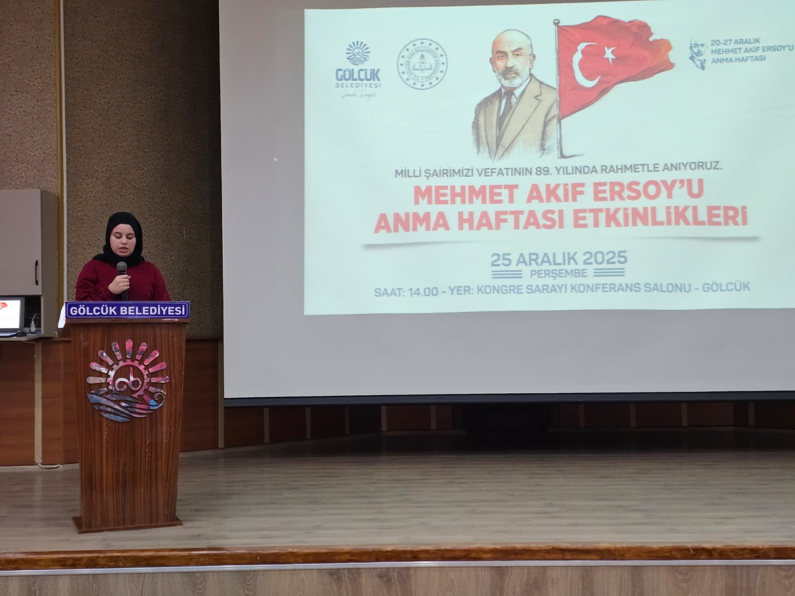 Gölcük Belediyesi ve İlçe Milli Eğitim Müdürlüğü işbirliğinde düzenlenen programda; İstiklal Marşı Şairi Mehmet Akif Ersoy, vefatının 89. yıldönümünde saygıyla anıldı.